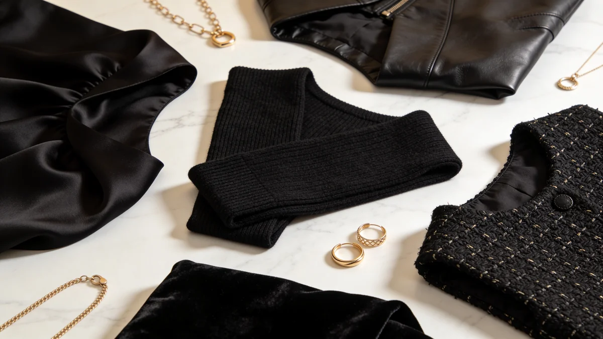 The key to a black date night outfit is elevated fabric. Silk, cashmere, and quality leather distinguish "date night sophisticated" from "running errands in black." If budget is a factor, invest in one elevated piece — the top — and let the rest be quality basics.