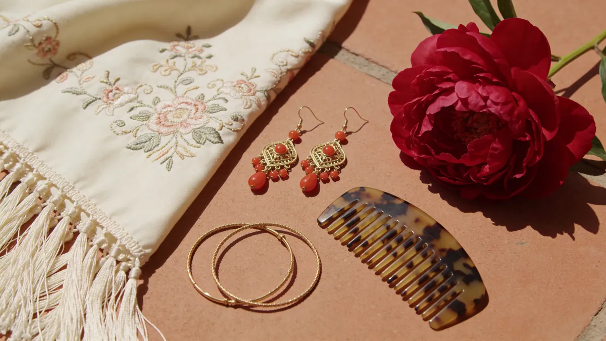 Un traje de flamenca sin los complementos adecuados es como una sevillana sin compás: técnicamente existe, pero le falta el alma. Los accesorios representan entre el 20% y el 40% del presupuesto total del look de feria, y son los que realmente personalizan cada conjunto.