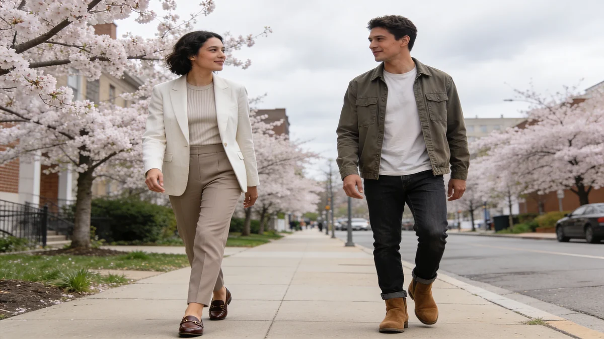 Women: Slip midi dress + light leather or suede jacket + ankle boots or low block heels + crossbody bag. Alternatively, tailored wide-leg trousers + a fitted top in a rich color + structured blazer. A 2025 Match.com Singles in America survey found that "thoughtful style" ranked among the top three first-impression factors, ahead of accessories and grooming.