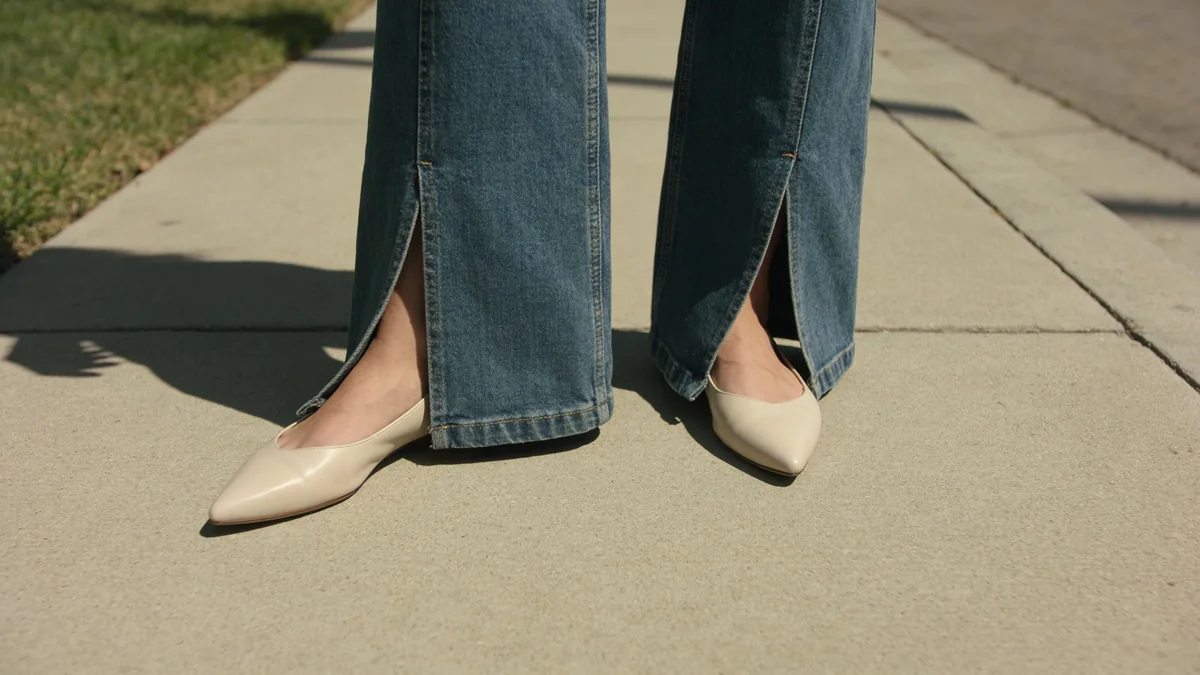 Ballet flats are one of the strongest footwear trends of 2026, and they pair exceptionally well with wide leg jeans. A pointed or almond-toe flat peeks out beneath the hem and elongates the leg without adding height. This combination reads effortlessly polished for work, brunch, or running errands.